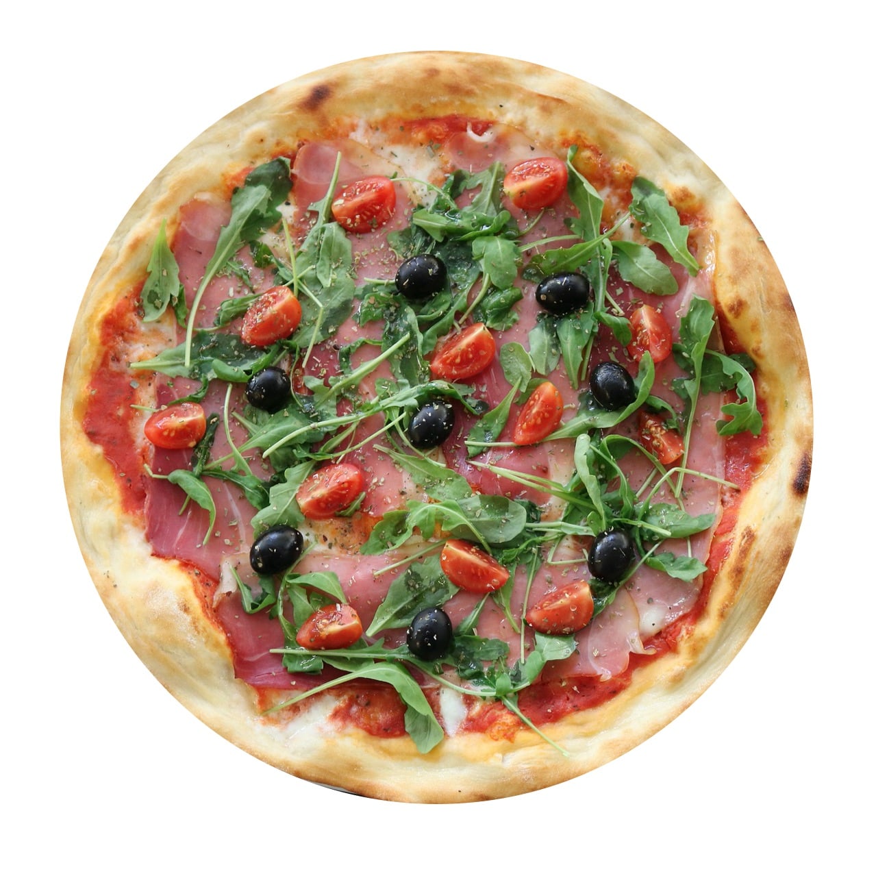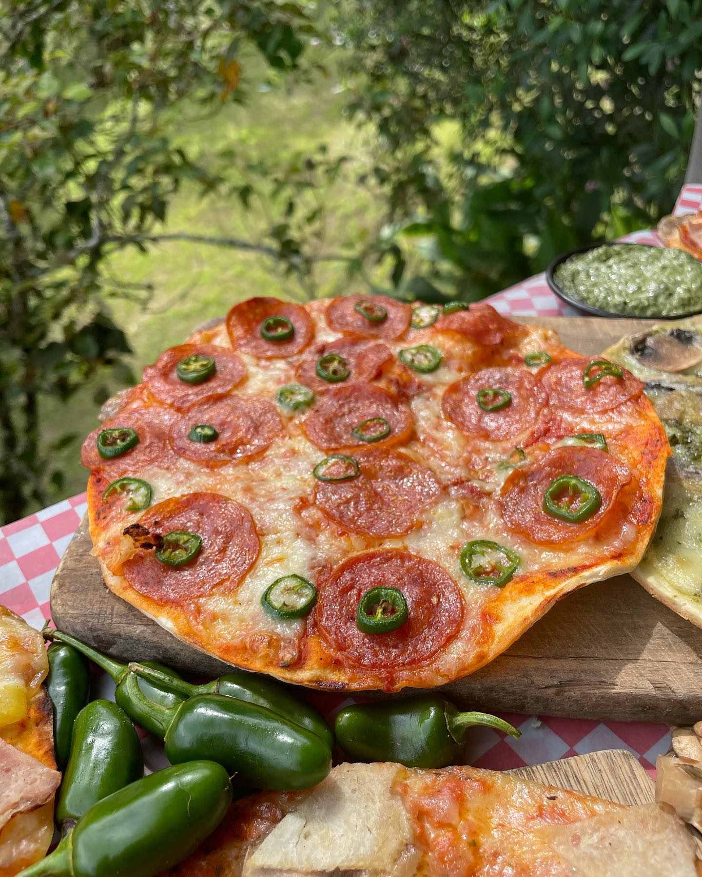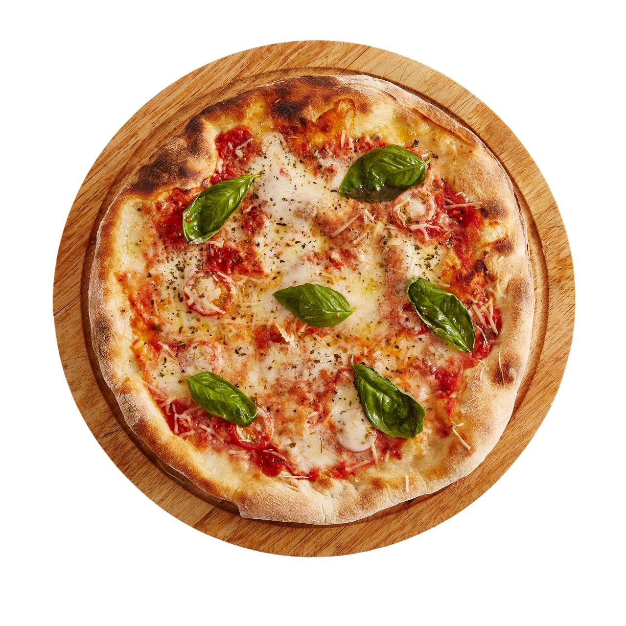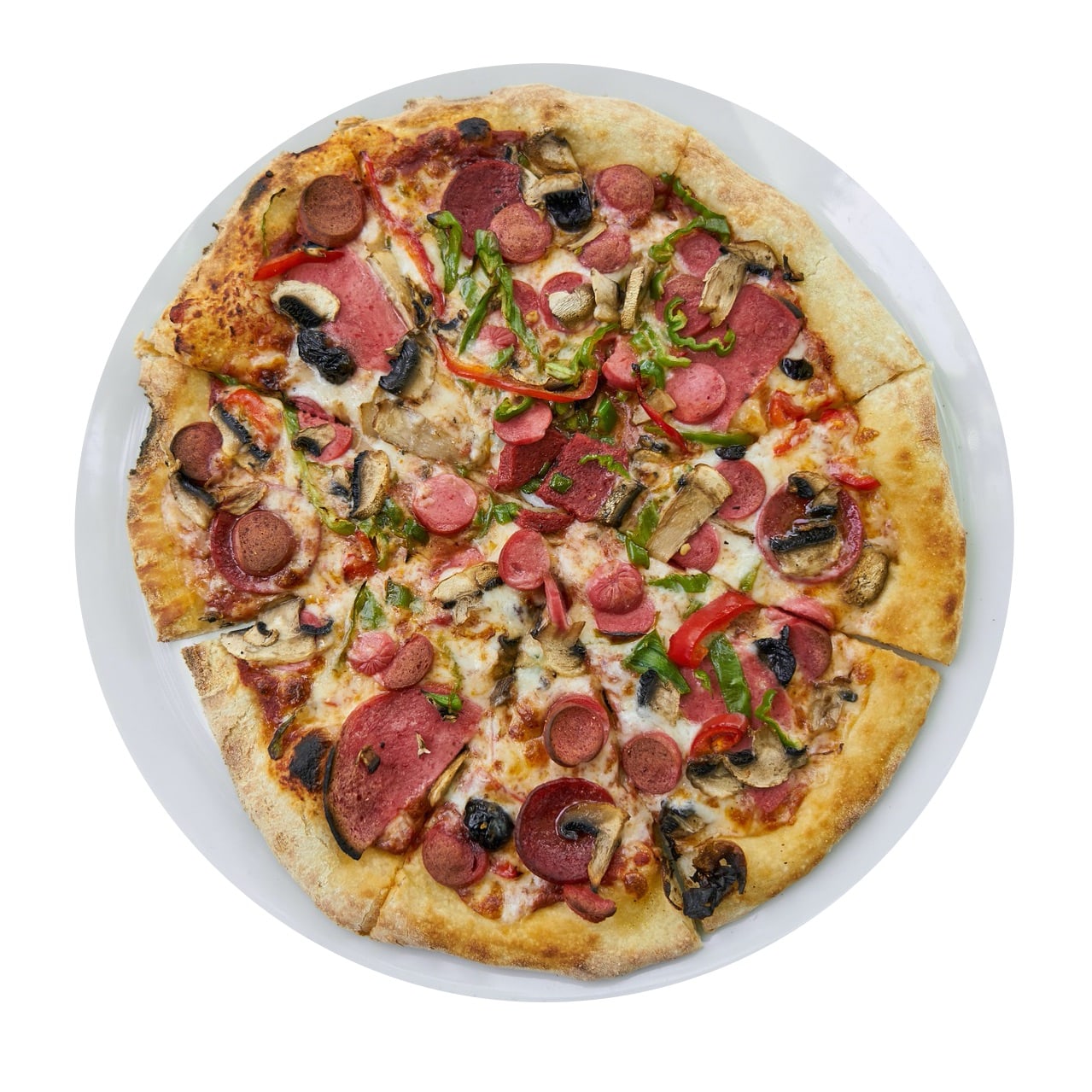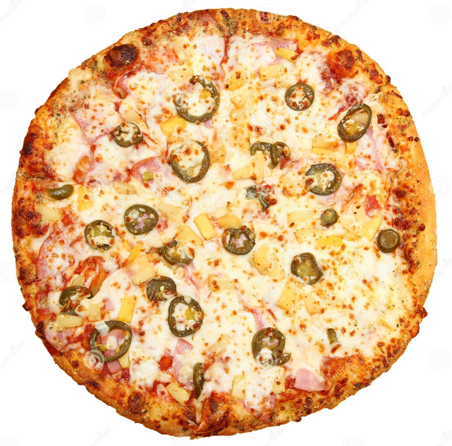 Margarita clásica, peperoni y jalapeño, piña y jamón, champiñones, vegetariana
